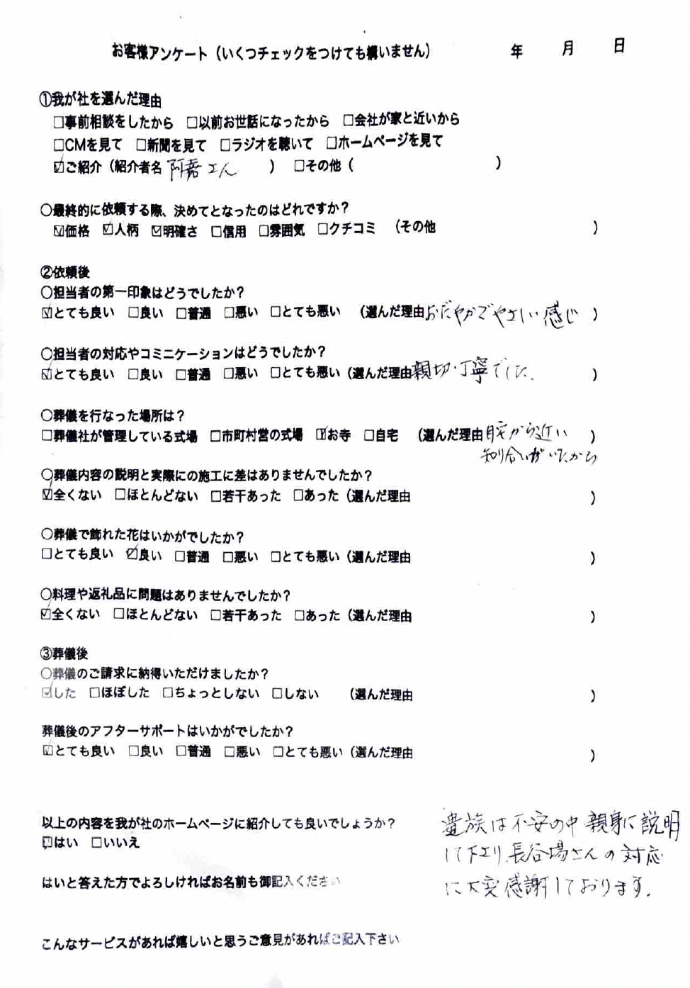 (株)はせば葬祭では、今後の葬儀をより良いものにしていくために、お客様にアンケートにご協力いただいております。